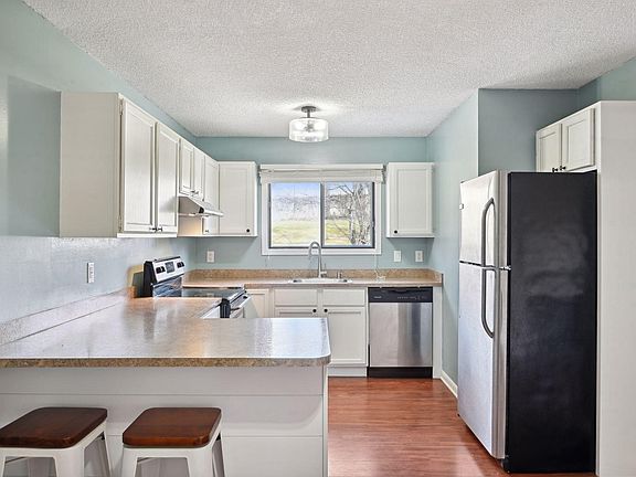 Welcome to this charming 2 bedroom, 2 bath town home in convenient Maple Grove location. Kitchen has white cabinets, stainless appliances and a trendy shiplap peninsula. Living room has a cozy fireplace with new tile surround and electric insert. Upstairs you will find 2 generously sized bedrooms, a full bath with new tub surround and flooring and convenient washer and dryer. Great location close to parks, trails, shopping and highway access.