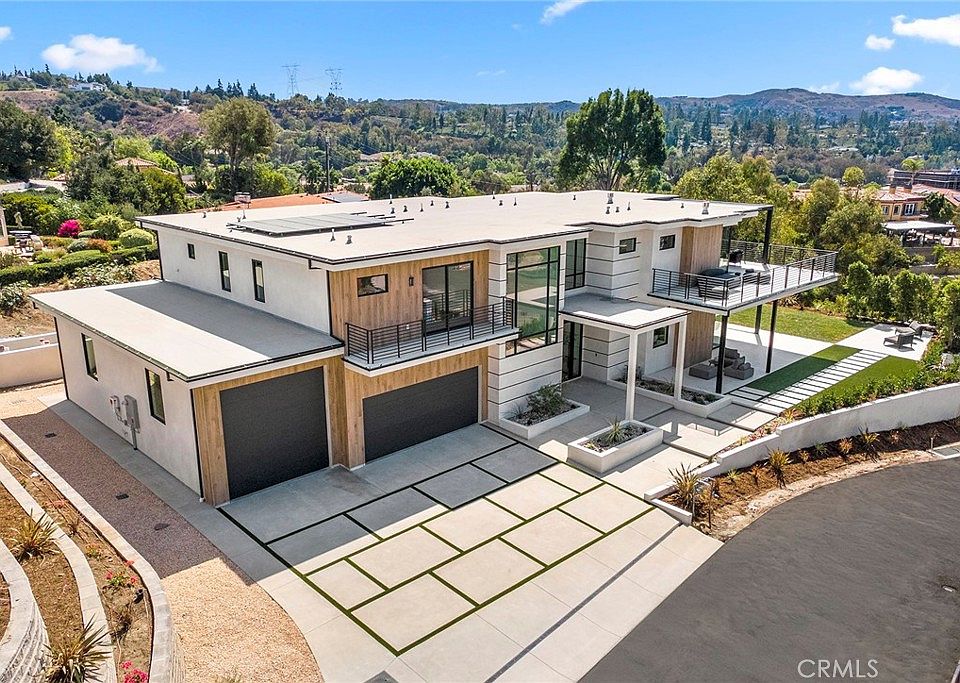 BRAND NEW contemporary masterpiece redefines luxury pushing the limits of possibility for North OC living! Nestled within a privately gated enclave of custom estates and perched on one of Anaheim Hills’ most coveted locations, this brand-new contemporary masterpiece redefines luxury living. Offering a rare combination of tranquility and convenience, the property sits on over half an acre with sweeping city light views stretching out to Los Angeles. Here, you’ll enjoy the sounds of nature and a rural-inspired setting—all just minutes from shopping, fine dining, and some of North County’s top schools. Designed with entertainment in mind, the home spans over 5,800 SF of living space, complemented by 1,200 SF of garaging (including a dual-sided RV garage) and an additional 1,900 SF of covered patio space for seamless indoor/outdoor living. With 6 bedrooms and 6.5 baths, every secondary bedroom boasts en-suite baths, walk-in closets, and suite-like dimensions. Each bathroom has been thoughtfully curated with distinctive modern and contemporary finishes, giving every space its own personality. Enter through the 10’ steel pivot door into a stunning two-story foyer showcasing white oak floors, smooth-finish walls, and a striking floating staircase. The main level offers a grand formal dining room, private office, and a large en-suite guest suite. The chef’s kitchen is nothing short of spectacular—an entertainer’s dream with a massive quartzite waterfall island, rift-sawn white oak cabinetry, professional-grade Wolf and SubZero appliances, dual dishwashers, and a show-stopping secondary prep kitchen. The space flows effortlessly into the expansive family room, complete with a linear fireplace and a disappearing zero-corner wall of glass. The primary suite is a true sanctuary with soaring ceilings, a linear fireplace, private retreat, and access to the wraparound patio with captivating LA views. The spa-inspired bath rivals the finest resorts, featuring dual walk-in closets, dual vanities, make-up station, soaking tub, and an extraordinary walk-in rain shower. The 6th bedroom doubles as the most incredible gym, opening up with disappearing glass walls to forever views. Outdoors, the possibilities are endless—an expansive covered patio, built-in outdoor kitchen, fire pit, and lush grassy yard with a perfect spot for future pool. All set against a breathtaking backdrop of rolling hills, city lights, and endless sky. Your trophy estate awaits its first owner!