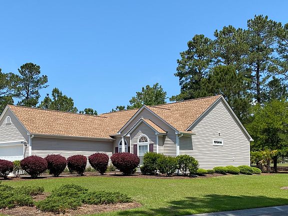Partially Furnished. Beautiful 3 bedroom 2 bath home with many upgrades including 42 inch kitchen cabinets, extended garage, corian countertops, and laminated wood floors. You will enjoy your golf course and water view from your Carolina room. Home is on a corner lot so no neighbor on the right side of your home. This open floor plan is excellent for entertaining your guests. The community offers many amenities including outdoor pool, tennis, pickleball, fitness center, library and party room. Close to one of the top beaches in the world, Sunset Beach, as noted in National Geographic.