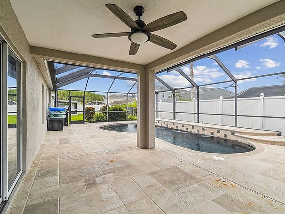 NEW ROOF! POOL HOME – LOW HOA, NO CDD! Welcome to this 4 bedroom, 2 bath pool home in the highly desirable community of Palm Cove in Wesley Chapel. Offering the perfect blend of comfort and convenience, this home is ideal for anyone looking to enjoy the best of Florida living. As you step inside, you’re greeted by a light and bright living/dining room combination. The spacious kitchen with newer appliances, seamlessly connects the living space – creating a central hub perfect for entertaining or everyday living. The primary suite is a private retreat with large walk-in closet and en-suite bath featuring dual sinks, shower and garden tub. A split-bedroom layout ensures privacy for guests or family members. Large sliding doors from the family room open to an expansive screened-in lanai, offering a seamless indoor-outdoor flow. Enjoy evenings outdoors or unwind in your own heated sparkling pool. Recent updates deliver peace of mind, including new ROOF in April 2025 as well as pool pump in 2024. Located minutes from I75 and Overpass Rd. Great location - close to schools, restaurants, Tampa Premium Outlets, AdventHealth Center Ice, and Wiregrass Mall.