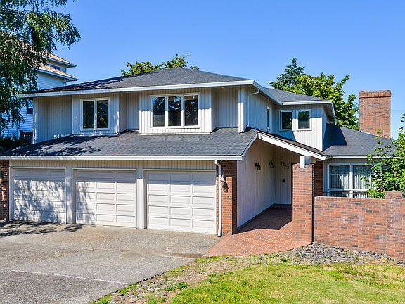 Light & bright contemporary in Cooper Mountain. Open great room with vaulted ceilings & large windows. Kitchen with granite counters, stainless appliances, island with cooktop & eating bar. Formal living & dining rooms. Slider off the family room to access the large deck overlooking backyard. Huge master suite & three more large bedrooms upstairs. Bonus area upstairs. Four car garage & extra storage in basement. Great area!