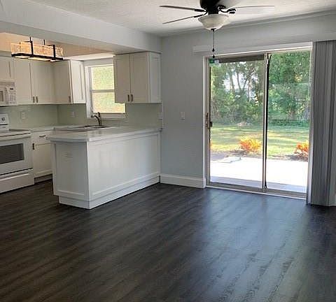 AVAILABLE AUGUST 1ST 2025. Beautifully updated, spacious duplex conveniently located in desirable San Carlos Park neighborhood, available for immediate occupancy! This well cared for unit features 2 bedrooms and 1 bathroom, washer/dryer in residence, and a large patio overlooking spacious backyard! Laminate flooring and tile throughout, no carpet! New appliances, new septic installed in 2017, AC in 2015, and newly installed double insulated windows. Pets OK with prior owner approval. Lawn care included! Very close to Gulf Coast Town Center, Florida Gulf Coast University, and RSW Airport. Don't miss this great opportunity!