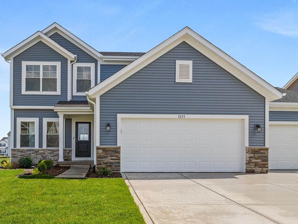 Welcome home to the Sage! Built for comfort and modern living, this two-story home offers great space and great affordability. Through the foyer and into the heart of the home you are met with a spacious, open-concept great room, kitchen, and dining space. The kitchen showcases quartz countertops, stainless steel appliances and large island. Open the sliding doors and step out onto a wood deck with stairs leading to the backyard. The main floor also features a powder bath. Luxury Vinyl Plank flooring covers all of the main floor. The second floor offers a private owner's suite with walk-in shower, two additional bedrooms, full guest bath, loft, and second floor laundry room. This home also features a full, look-out basement with rough-in plumbing and side three-car garage.