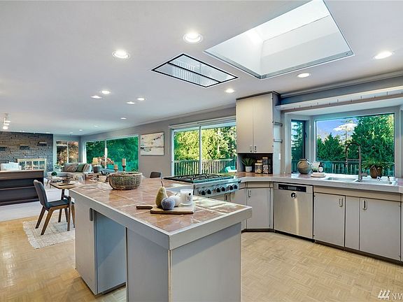 Fall in love with this Kenmore home's classic mid-century curb appeal! Once inside, enjoy the sought after open layout. Loads of natural light in the living room! Head outside to the expansive party deck for extended entertaining space. Owner's suite located on the main floor w/ period specific built-ins & ensuite bath. Downstairs has an oversized bonus room & rare solarium, perfect for your indoor plants. Outside, a secluded backyard oasis awaits. Minutes to restaurants, PCC Market & I-405!