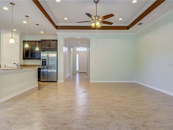 ** PLEASE TAKE A WALK THROUGH YOUR NEW HOME WITH THE 3D INTERACTIVE VIRTUAL TOUR ** Talon Bay is a small, gated, & very friendly community w/manicured lawns, 7 lakes, & a beautiful club house w/a resort style heated pool, exercise room, small library and large screened room with a gas grill for entertaining or hosting community events. This exceptionally beautiful 1900+ sq. foot D.R. Horton, Edison model home has 3 bedrooms plus a den/office, 2 baths, 2 car garage & a peaceful wooded backyard view. Pull up in the paver driveway & be greeted w/lush landscaping, sprinkler system, exterior lighting & a screened in front porch entryway that leads you into the grand foyer of your new home! Open the front door to architectural delight, arched entryways & high ceilings. The guest bedrooms & bath are across the home from the master & they feature ceiling fans, large windows, private closets & ceramic tile floors. To the left of the home you will find an inside laundry room w/solid wood cabinets & utility sink & your office/den through the double french doors. The living room is open to the dining area & gourmet kitchen which boasts a large island w/breakfast bar, 42" wood cabinets w/crown molding, granite counter tops, closet pantry & SS appliances. The cozy breakfast corner is the perfect spot to sit and enjoy your morning cup of coffee. Triple sliding glass doors lead out to the extended & private screened in lanai w/pavers, a great spot for entertaining family and friends! The master suite has decorative tray ceilings, dual walk in closets & sinks, make-up vanity, roman walk in shower, separate toilet stall and a garden tub for the ultimate in relaxation! Home is on city water plus has a Well for irrigation which will save you money on your water bill! Come enjoy living just minutes from many of Florida's beautiful GULF BEACHES, shopping, dining, medical facilities, new West Villages Center, BRAVES STADIUM, and much, much more! Also, you're just minutes to Historic Downtown Venice! Don't miss out on this BEAUTY!