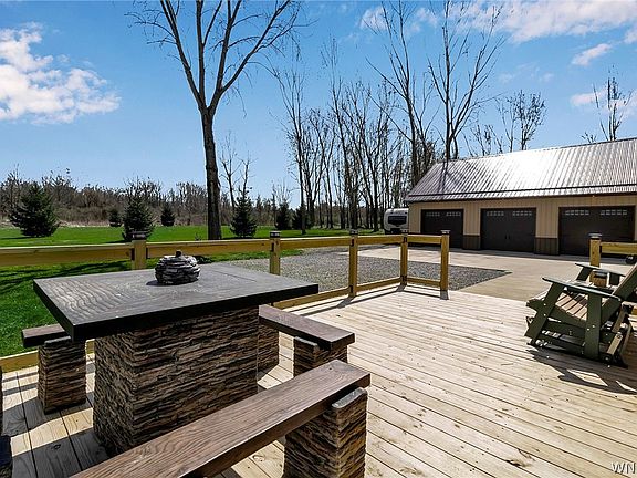 Remarkable Ranch built in 2018 on exceptional 11.6 acre mostly wooded, low maintenance lot! Setback from the road with a beautiful small creek running through the woods. 1st floor primary bedroom with walk in closet & luxurious en suite bath w/tiled walk in shower & spa tub for 2! Open concept great room with wood burning stove. Hickory cabinets and granite tops with appliances included. 1st floor laundry room/bathroom with unique access to exterior prevents humans and dogs from tracking dirt through the house! This home has a finished basement you will want to use! Egress window brings in natural light. In addition to the bar & living area w/electric fireplace, there is a bedroom, half bath & unfinished storage area. HUGE PERK... this home has an unfinished 2nd floor that is perfect to add either 2 smaller bedrooms or 1 large bedroom! 1st floor 1200sqft, finished basement 1000sqft, professional floorplan measurement in photos. 1500 gallon septic approved for 3 beds above grade. Central AC! Steel roofs! Tankless HWT! 30x40, 2 story outbuilding with 3, 8ftx9ft bays plus 4th tandem bay. 2 doors electric. 30 Amp Camper hookup on exterior of building. OFFERS DUE TUESDAY 4/23 @ NOON.