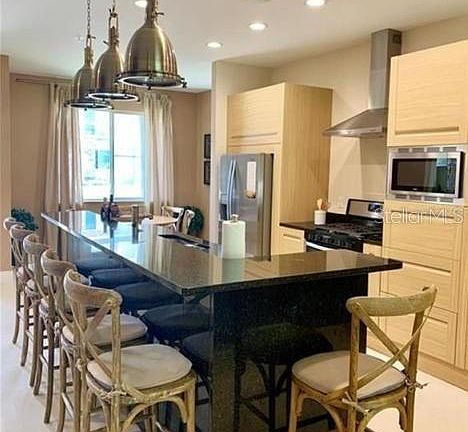 Experience true resort-style living in this stunning 4-bedroom, 4.5-bath luxury villa located in the gorgeous Magic Village Resort, just 5 minutes from Walt Disney World. This fully furnished property offers an elegant open-concept layout with a gourmet kitchen, high-end finishes, and spacious living and dining areas designed for comfort and sophistication. Each bedroom is a private suite with its own full bathroom. Enjoy outdoor living with a private balcony and a summer kitchen, perfect for entertaining family and guests. Magic Village offers five-star hotel amenities, including a resort-style pool, fitness center, restaurant, concierge, and 24-hour security—ideal for personal use or as a high-income short-term rental investment. This villa combines luxury, location, and convenience in one of the most exclusive communities near Disney. The unit has never been used for vacation rentals, it is for family use, therefore, it is in impeccable conditions.