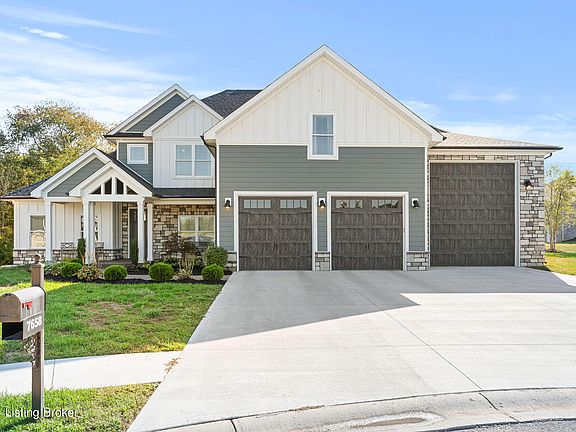 Welcome to luxury living in The Estates of Danbury Oaks, Charlestown, IN. This custom-built home features 4 bedrooms, 2.5 baths, and spacious living areas with soaring ceilings for a grand, elegant feel. Fully equipped as a Smart Home, enjoy modern convenience throughout. The gourmet kitchen offers a walk-in pantry with a library ladder and a built-in dog crate under the stairs. A mini fridge and beverage cooler are included. Comfort is ensured with a tankless water heater and triple-zoned HVAC system. A 46x17 toy garage (12x14 door, DOT compliant, 50 AMP, hot/cold water) accommodates 99% of RVs with slides open. With all upgrades completed, this turn-key home is ready to impress! Don't miss your chance to own this exceptional property!