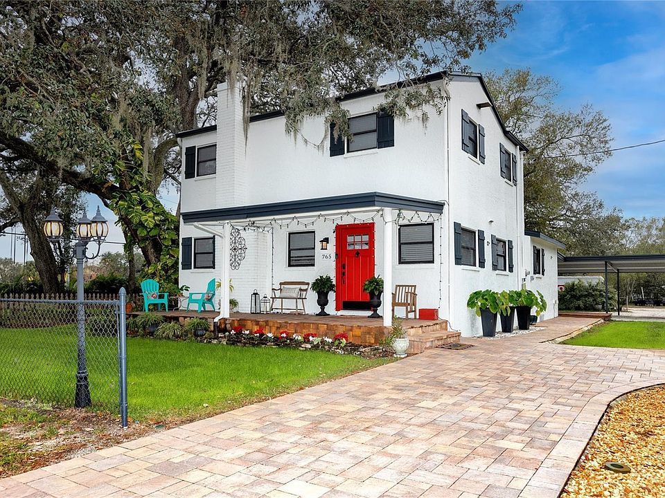 **For faster response, please message through Zillow* Farmhouse chic, this home features a brand-new updated kitchen. This home is an entertainer's dream with its large living room, dining room, bar area, and not to mention, the 312 SF of additional footage (this was the original carriage house), that is currently used as a living room and office that leads out to the fenced-in section of the spacious yard. The Master Bedroom and bathroom are located on the main level, with 3 more spacious bedrooms and a full bathroom up upstairs. The mudroom/laundry room, just off the kitchen, will have you in love with the custom storage and bench. Enjoy sitting on your front porch with its custom pavers, overlooking the custom-built pull through driveway with landscaped center island. Or you could be relaxing on the spacious back deck taking in a backyard that was thoughtfully landscaped with future privacy in mind. Half of the yard has the perfect space for a pool, boat/RV, or any toy you can think of alongside the 3 car covered carport and shed. No breed restrictions