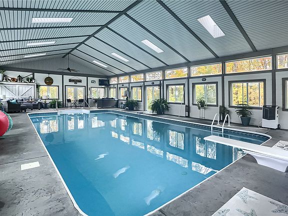 ENTERTAINER'S DREAM HOME. Discover a harmonious blend of rustic elegance & modern comfort on this 6.97-acre estate. The home features 4 beds, 2.5 baths within 1454 sqft. Step into a beautifully remodeled kitchen (2020) adorned w/ Sierra Blanca granite countertops, where culinary creativity meets sophistication. The open floor plan seamlessly connects the kitchen to the rest of the living spaces, creating an ideal environment for entertaining. Explore lush woods with ATV trails. Enjoy alfresco dining in the stamped concrete outdoor kitchen with a firebrick oven. The heart of this property lies w/in the indoor pool house-a haven of relaxation & entertainment. Spanning 30'x60' heated space features a 20'x40' indoor inground pool, ranges 3'x8' in depth. Radiant heat in the cement floors ensures year-round comfort, while a commercial-grade humidifier & pool cover maintain the pool's pristine condition. Two garages provide ample space. 50-year roof (2007) offers durability & peace of mind.