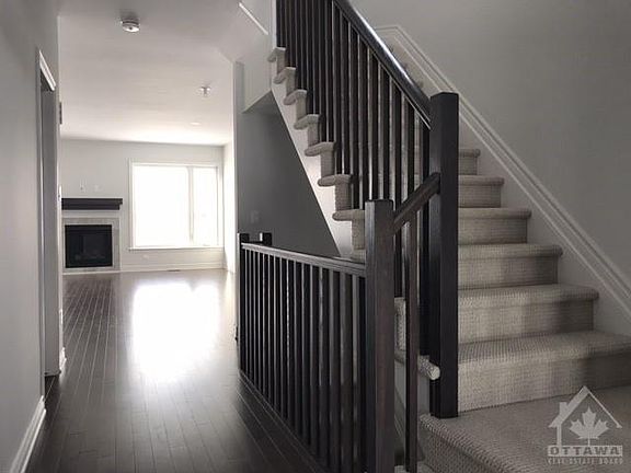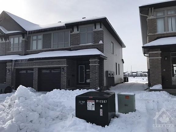 An impeccable home loaded with upgrades. This luxurious end unit townhome has never been lived in, boasting top-of-the-line finishes, large/bright windows, & numerous upgrades. The kitchen is absolutely fantastic with a massive island graced w/quality Granite counters and walk in Pantry! The bright concept main floor living & dining rooms feature, gas fireplace, gleaming, hardwood floors. Three bedrooms on the second level, including a generous master bedroom with a 3pc ensuite bathroom with a glass/tile shower and a walk-in closet, a full family bathroom and convenient laundry room. Central AC, Central Vacuum and Auto Garage door opener installed. Blinds will be professionally installed by Hunter Douglas. Desirable location close to English and French schools, Shopping, public transit, Park and ride to LRT, Walking distance to upcoming Orleans health hub, parks and natural trails.