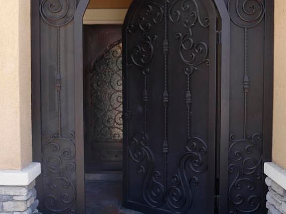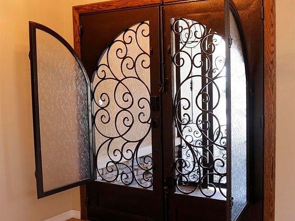 Custom iron gateEat-in spacePrimary suiteSeparate tub and showerCozy family roomOpen floor planCovered patio