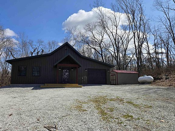 Hilltop getaway! Check out this 2 bed, 1 bath slab home with attached garage nestled in the hills above the mighty Mississippi River. This home, built in 2018, features an open concept main living area, flanked by the bedroom areas and a 3 season sun porch overlooking the native timber lot. Outside you will find a large deck with accent lighting and a large storage shed. Call today for a tour of this secluded home.