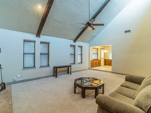 Charming 3-Bed, 2-Bath, 2-Car Garage Home on Spacious Corner Lot is Proudly offered by the Original Owner. This well-maintained home sits on a generous corner lot, and features a welcoming layout perfect for comfortable living and entertaining. Step into the spacious family room highlighted by vaulted ceilings, beadboard wall accents, a cozy wood-burning fireplace, and ceiling fans. The space opens up to a covered patio shaded by mature trees — perfect for relaxing or entertaining outdoors. The beautiful kitchen boasts granite countertops, a tile backsplash, updated appliances, a smooth cooktop, electric oven, and ample cabinet space. A formal dining room offers an elegant setting for family meals or hosting guests. The large master suite includes a spa-like bathroom with double sinks, a separate shower, a garden tub, and two generous walk-in closets. Additional features include energy-efficient vinyl windows, lots of storage throughout, an oversized driveway, and a 2-car garage providing plenty of parking. Conveniently located near schools, shopping, hospitals, and major highways — this home offers both comfort and accessibility.