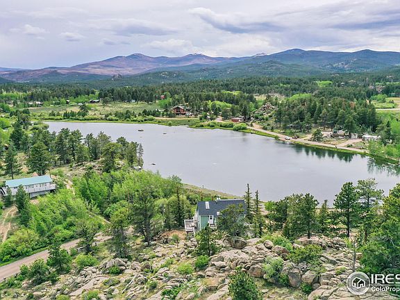 Beautifully remodeled 2 story home w/ walk-out bment nestled into rocky outcroppings with stunning mountain & lake views. 3 beds (2 conforming), office/flex/bunk room, 2 full baths, family room w/ wood burning fireplace, movie room, & huge rec-room. This home is perfect for weekend retreats or year round living.  Located on Shagwa Lake & positioned on 0.93 acres, the property sits on 2 separate lots - both included in sale (see survey)!  The home is built up against the rocky outcroppings, w/ an open "prairie area" to the west of the driveway - one of two perfect spots to build a shop/detached garage.  On the main level, the kitchen was reimagined to take advantage of the breathtaking views the moment you walk in.  The dining area comfortably seats 6, + 4 more at the breakfast bar.  The spacious family room has vaulted ceilings, wood burning stove & floor to ceiling windows.  Off the family & dining room 2 sets of french doors open up to a HUGE wrap around porch - the best spot in town to watch the 4th of July fireworks.  Main level also includes high efficiency washer & dryer, built-in pantry/ cabinets, full bath, main level bedroom (with access to deck) & fun under the stairs nook.  Custom staircase railing & sliding barn door lead you up to the huge primary bedroom with extensive walk-in closet, full bath, & adjacent flex room used as a bunk room/office/yoga room. Both the flex room & primary have private decks.  Basement w/ walk-out access has a 3rd non conforming bedroom (with egress window), movie room, & huge game room.  Multiple vehicle parking areas.  1 hour from Ft. Collins & mins to the conveniences in RF Village. Home includes deeded fishing rights to the 8 private lakes surrounding the home. Shagwa Lake is for fishing ONLY. It DOES NOT ALLOW kayaking/paddle boarding (too shallow) but nearby Apache, Hiawatha & Ramona lakes do (see map). Welcome to your mountain/lake dream home. Click on video / virtual tour for property drone video.
