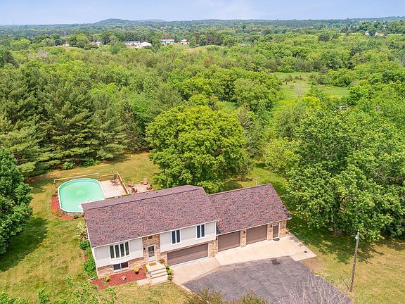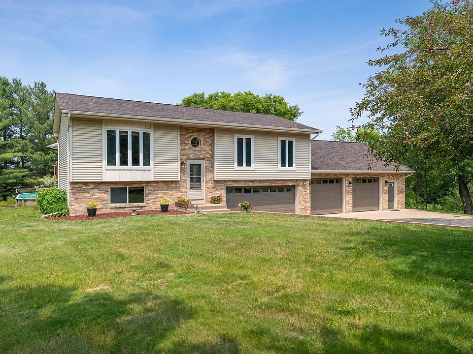 Wildlife lover's delight here! On this 5+ acre parcel, sellers have recently planted over 175 shrubs & trees including American plum, chokecherry, apple and cranberry. Wildflowers, clover, black raspberry and strawberries are also here for you to enjoy! For the hobby enthusiast, don't miss the attached 4 car shop/garage (24 x 20 plus 24 x 30) all set up for in floor heat. Benefit from all of these updates: lighting, door hardware, carpet, paint, refrigerator, d/w, microwave, custom wood blinds, water heater, heat pump, A/C, pool pump, shingles, insulated garage doors, and 2022 shingles. Relax out back by the above ground pool while you plan your next adventure in your own back yard. Currently an ideal set up for beekeeping for those interested, or grow your own food here and raise chickens; endless possibilities for this sanctuary!