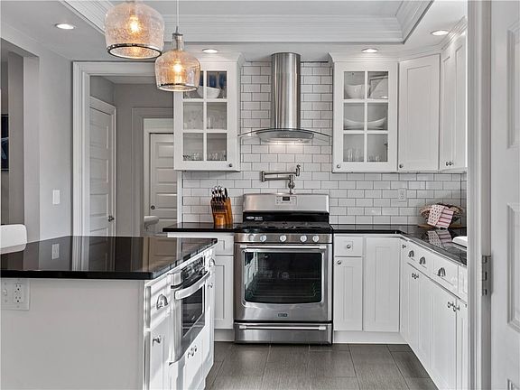 Welcome to 766 Main Street! This beautifully renovated 3 bedroom Colonial is simply delightful and meticulous inside and out! Spacious interior is filled with charm and character and offers a wonderful open concept layout with central air conditioning and gleaming hardwoods throughout. Main floor features a gorgeous custom kitchen with stainless appliances, family room with coffered ceiling, cozy front living room, dining room, and half bath with laundry. Second level offers nice master with private bath and walk in closet, second bedroom, full bath and sitting area perfect for desk and work space. Third floor has spacious front to back bedroom with additional space for home office or study. Front porch, back deck and sun-filled back yard are ready for you to enjoy. Full basement and detached garage compliment this property with an abundance of utility space and storage. Perfect location...quick access to bike path and short distance to waterfront, park, cafes and fine restaurants. This property is quite special...make this your home sweet home!