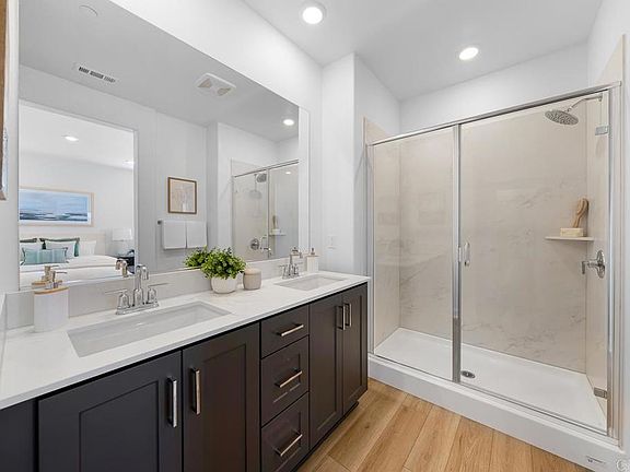 FHA AND VA APPROVED! Welcome to 766 Makani Street #1 – a stunning, new construction end-unit townhouse located in the highly desirable Sunbow master-planned community of Chula Vista. This two-story home offers stylish upgrades and smart home features throughout. The kitchen boasts sleek quartz countertops, European-style soft-close cabinetry, a Samsung Side-by-Side Refrigerator with Family Hub touchscreen, a stainless steel undermount sink, and an over-the-range electric microwave/hood. A central island with a quartz slab countertop adds both convenience and style. Upstairs boasts all four spacious bedrooms, providing the perfect layout for privacy and functionality. The owner’s suite offers a peaceful retreat with dual sinks, a beautifully finished shower, and a generous walk-in closet with mirrored salon doors, making mornings feel luxurious. A brand-new Samsung washer and dryer in the laundry room add everyday convenience. Enjoy upgraded luxury vinyl plank flooring in the whole home, along with energy-efficient LED lighting that keeps the home bright and inviting. The attached two-car garage has epoxy flooring, storage racks throughout, tankless water heater, and an EV charging port. The insulated garage door with opener, Honeywell smart thermostat, and Schlage Encode smart lock offer both comfort and smart features for modern living. Sunbow residents enjoy access to community features, including a swimming pool, clubhouse, dog park, sports court, picnic area, and more. With close proximity to freeways, top-rated schools, Otay Ranch Town Center, and local dining, this home offers the perfect balance of comfort and convenience.