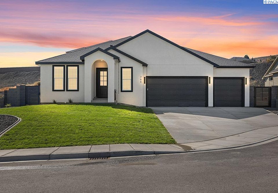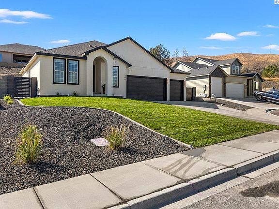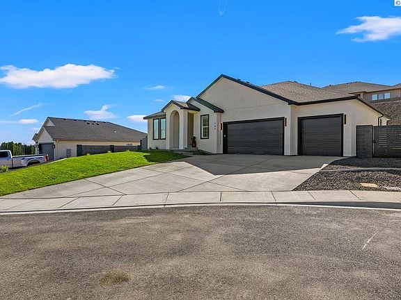 MLS# 287617 Brand new construction that just got finished. Stucco exterior, a 3-car garage and full landscaping, block fencing, and custom metal gates. Inside you will fall in love with the custom designs and the beautiful craftsmanship. Solid quartz countertops, LVP flooring, built in custom shelving in the family room, raised 10ft. ceilings and a master bathroom to brag about! You will love the stand-alone bathtub and custom tile shower with a waterfall feature and an additional shower head. This home has natural gas and has a stub out on the patio for your BBQ! This home is full of custom features that you will appreciate. The garage has multiple outlets and a 220v outlet for an electric car. Garage is insulated and finished. This home is in the heart of South Richland close to all amenities.