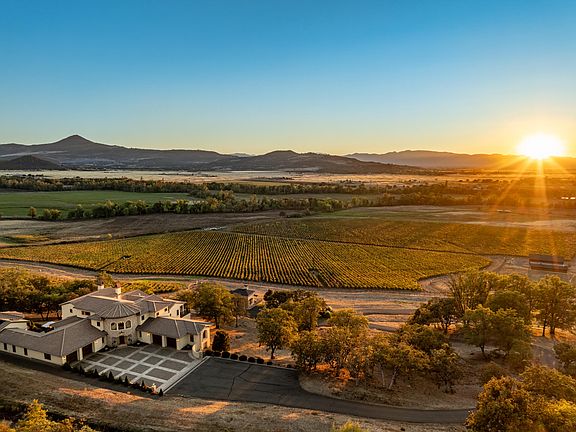 Surrounded by the natural beauty of Southern Oregon's Rogue Valley, this Mediterranean-inspired estate pairs timeless design with agricultural excellence. The 7,256± sq. ft. residence centers around a private courtyard and showcases cathedral ceilings, a grand entry, and a chef's kitchen opening to a grand great room and multiple outdoor living areas. The primary suite offers vineyard views, spa-style bath, and expansive deck, while amenities include an executive office, library, wine room, gym, sauna, and indoor saltwater pool. A matching 851± sq. ft. casita provides a luxurious one-bedroom guest retreat overlooking the vines. The 160-acre property features Celtic Moon Vineyards—42.5± acres of premium vines with 77.44 acres of irrigation rights. Located minutes from Eagle Point and Medford, this private estate captures the essence of Southern Oregon's wine country lifestyle.