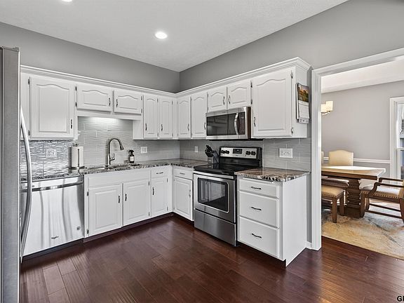 Finished basementNewer privacy fenceFlexible living spacePermanent sidingMatching granite countertopsCoordinated fixturesDesigner backsplash