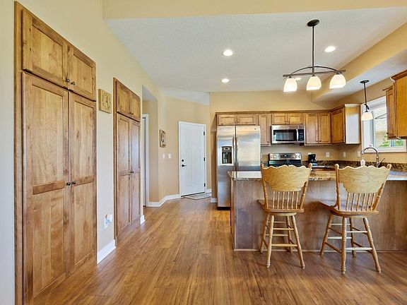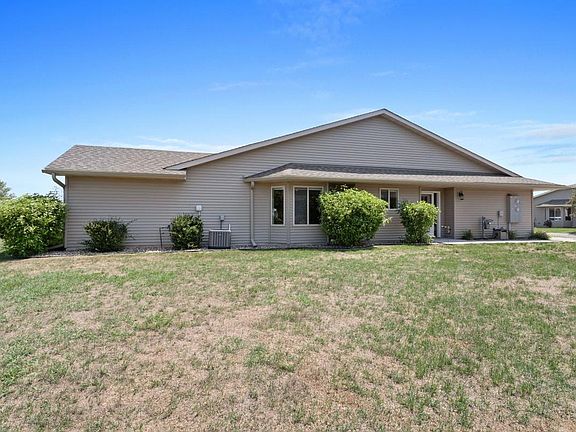 Act quickly on this beautifully upgraded 2 bedroom 2 bath with 2 car garage twin home. Recently built in 2019 and featuring all living on one level, no steps/stairs. Vaulted ceilings, granite counter tops, upgraded cabinetry, stainless steel appliances, custom blinds, and designer fixtures throughout. Enjoy the gas fireplace in the living room, the light & bright sunroom overlooking the backyard/park and an outdoor patio to soak up the sun. The master bedroom offers a walk-in closet, and private bath. The second bedroom would also make for a great den or office space and is located on the other end of the house for privacy. The association covers all exterior maintenance, snow and lawn - carefree living is within reach! Call today.