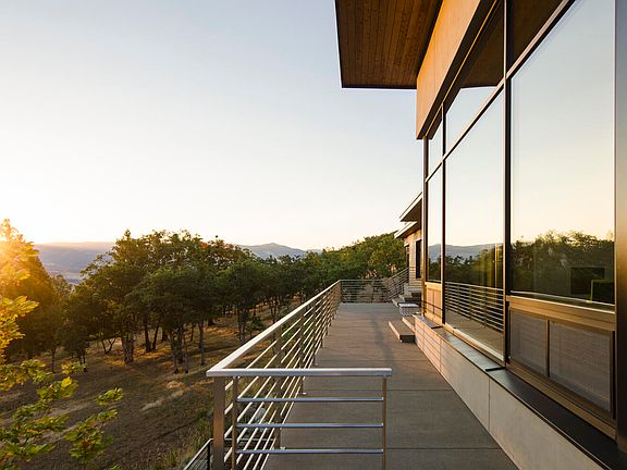 This LEED Platinum modern minimalist home built by Green Hammer™ is one of the most energy efficient and environmentally conscious homes on the West Coast. Set on 9 acres with majestic views of the Cascade Mountains, the home lies only a half mile from Lithia Park and a mile from the Ashland Plaza. Bulthaup kitchen, Gaggenau/Miele appliances, dumb waiter, wide-plank solid black walnut flooring, reclaimed teak cabinetry, Unilux 3-pane windows, whole-house RO water filter, Bodart & Gonay fireplace, and much more. Floorplan includes large great room, living room, 3 bedrooms, 3.5 baths, study, gym/bonus room (or 4th bedroom), dual master closets, yoga/meditation room, e-nook, laundry room, abundant storage, oversized 3-car garage, 2-car carport, and 1,500 sf basement that can be used as a large storage area or workshop. Built using zero-VOC paint, natural wool carpeting, non-toxic materials, and Zehnder HRV to maximize fresh air and minimize exposure to airborne toxins and pollutants.