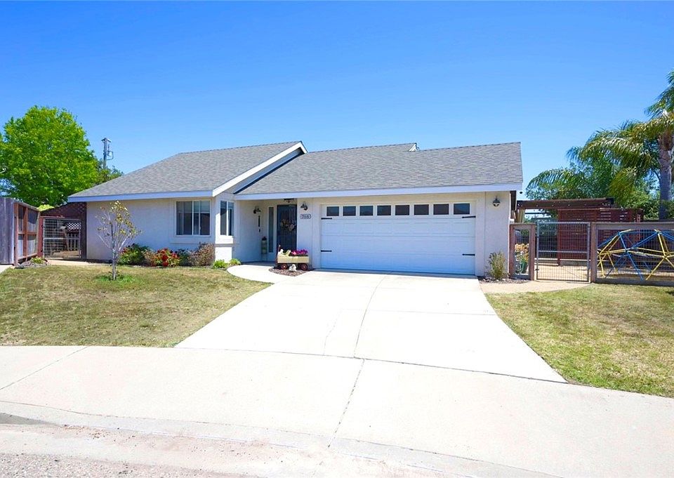 Welcome to this beautifully maintained single-family home located at the end of a quiet cul-de-sac in the heart of Nipomo. This inviting residence boasts 2 bedrooms, 2 full bathrooms, and 1,406 square feet of open-plan living space, perfect for both relaxing and entertaining. Step inside to discover a bright and airy living area featuring vaulted ceilings and an abundance of natural light. The home showcases vinyl plank flooring throughout the main living areas, creating a seamless and modern aesthetic. The gourmet kitchen is a chef’s delight, equipped with stainless steel appliances, granite countertops, and a butcher block island, ideal for meal prep and casual dining. The primary suite offers a tranquil retreat with ample space and a well-appointed en-suite bathroom and walk-in closet. The second bedroom is versatile and spacious, perfect for guests, a home office, or a hobby room. Both bathrooms are thoughtfully designed with contemporary fixtures and finishes. The beautifully low maintenance landscaped backyard is an entertainer’s paradise, perfect for hosting gatherings or enjoying a peaceful garden retreat. Additional features include an owned solar system, providing energy efficiency, and a spacious 2-car garage for convenience and storage. Located in a desirable neighborhood, this home is within close proximity to shopping, easy highway access, Nipomo Regional Park, Nipomo Native Garden and top-rated schools. Enjoy nearby world-class wine tasting and a short 20-minute drive to the stunning Pacific Ocean. Built in 2001, this home combines modern amenities with timeless charm, making it the perfect place to call home. Don’t miss out on this exceptional opportunity – schedule a showing today!