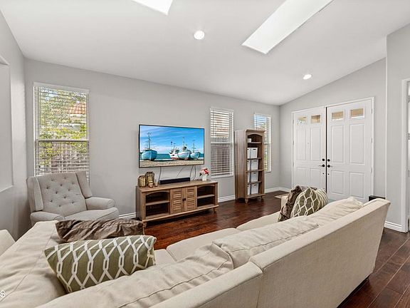 Welcome to 766 Vista Palacio, a stunning 4-bedroom, 2-bathroom home nestled in the serene neighborhood of Camarillo, CA. Boasting 1816 square feet of living space and a generous lot size of 6830 square feet, this single-story residence offers a delightful blend of comfort and style. Step inside and be greeted by the warmth of the newly installed engineered hardwood floors that lead you to the heart of the home. The renovated primary bath is a true retreat, featuring porcelain tile, a free-standing tub, dual sinks, and a rain shower head. The primary closet is equipped with Elfa storage organizers, while built-ins adorn two of the bedrooms' closets. The kitchen is a chef's dream, complete with a large island, granite counters, and ample natural light that dances off the high ceilings. The living room boasts a cozy fireplace, perfect for chilly evenings. This home also features a laundry room and a garage with an epoxied floor and built-in storage.Outside, the backyard is a private oasis with a new fence, a variety of fruit trees, and a patio cover with stamped concrete. The Ring security system provides peace of mind, while the Cul-de-sac location offers tranquility.This home is also equipped with a new heater and AC, along with a spacious laundry room. Do not miss the opportunity to make this exceptional property your own. Walking distance to beautiful Calleguas Creek Park! Schedule a showing today and experience the best of Camarillo living!
