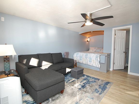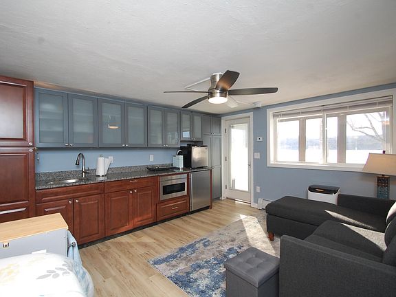 Lake Winnipesaukee Studio Condo with Deeded Boat Slip (upto 24ft boat) & Lift – Paugus Bay, Laconia, NH. Discover effortless lakefront living at this charming ground-level, end-unit studio condo on Lake Winnipesaukee’s Paugus Bay! This fully furnished retreat includes a deeded boat slip with a lift, offering direct access to New Hampshire’s most sought-after boating destination. Enjoy breathtaking lake and mountain views just steps from a pristine sandy beach, a vibrant tiki bar and cozy Adirondack chairs perfect for taking in spectacular sunsets. This versatile unit comfortably sleeps four and features a 3/4 bath, kitchen area and air conditioning for year-round comfort. The screened-in porch with glass enclosures allows you to extend your outdoor enjoyment into the cooler seasons. Resort-Style Amenities: paved boat launch & trailer storage, climate-controlled basement storage & shed, on-site laundry & ice machine, community gas grill, two assigned parking spaces + visitor parking. This self-managed association offers a prime opportunity as a waterfront year-round residence, or a vacation getaway. Located minutes from Weirs Beach, Gunstock Mountain Resort, Bank of New Hampshire Pavilion, local marinas, golf courses, restaurants, and shopping. This condo is a four-season destination for boating, swimming, fishing, snowmobiling and ice fishing. Don’t miss out on easy waterfront living in the heart of the Lakes Region—schedule your showing today!