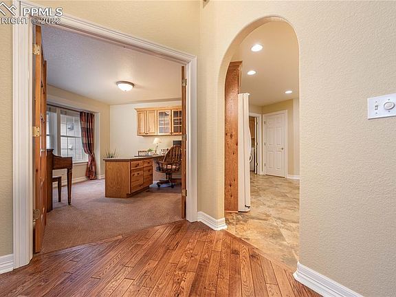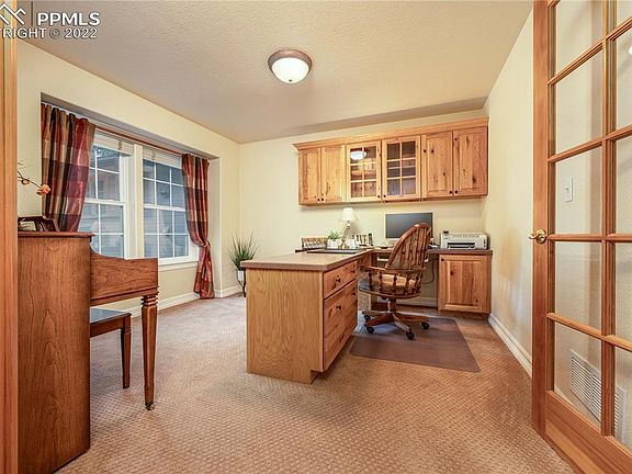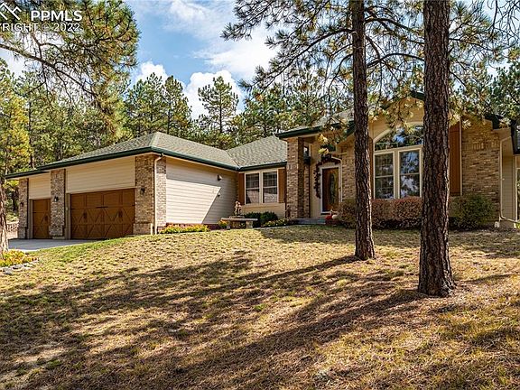 You'll find "peace among the pines" on this beautiful 2.3 acres in the coveted Sterling Pointe subdivision. This lovely and comfortable one owner ranch style home shows pride of ownership both inside and out. Inside you will find all three bedrooms on the main level. The primary bedroom includes an ensuite bathroom with new dream style shower, jetted tub, and a walk in closet. The two other bedrooms are on the opposite side of the home with their own full bath. If you work from home there is an ample office with french doors and custom cabinets. The great room boasts vaulted ceilings, a gas fireplace and opens to the warm and friendly dining room and kitchen. The classic country style kitchen has quartz countertops, built in plate racks, and a walk in pantry. From the dining room and great room you can exit through the new french doors to a spacious brick patio and wonderfully private backyard. The mud room with great built ins shares space with the laundry including a double utility sink. Downstairs you will find a finished game room, media room, or "make it what you want room". In addition there is a large workshop where's there plenty of room for the handy person in your life. If you need storage you'll find plenty with the 21'X17' storage/ mechanical room. The three car finished attached garage has epoxy floors and is heated. Outside it's a nature lovers delight with a gazebo to watch the wildlife and days go by. You'll love the privacy of the treed lot that is close to the Bear Dance Golf Course. The shopping and restaurants of Castle Rock are only a short drive away. Surrounded by million dollar homes this one is priced right.