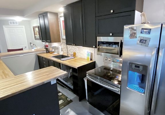 Spacious 2,000 sqft apartment features an Open Floor Plan, lots of Natural Light, Private Entrance, Patio with Garden Furniture! The plush & comfy Living Room includes a 65" Smart TV, Gas Fireplace, Office Space, Dining Set, and charming half-bath.