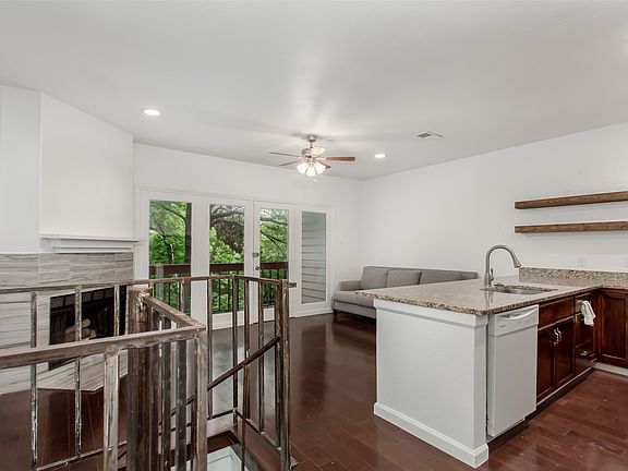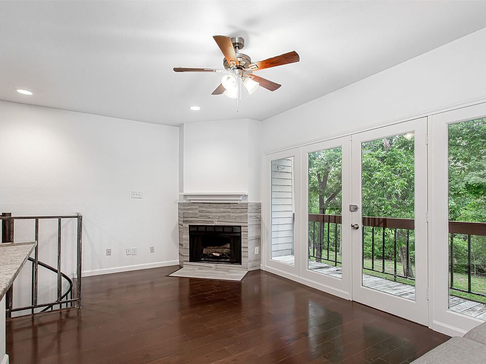 Welcome to 7660 Skillman St #401 – a condo offering the perfect blend of modern comfort and peaceful surroundings. Nestled in a tree-lined community, this 1-bedroom, 1.5-bath home is ideal for those seeking low-maintenance living with style. Step inside to discover an open-concept living space featuring elegant wood flooring, recessed lighting, and a cozy wood-burning fireplace accented with contemporary tile. The spacious kitchen is a home chef’s dream with granite countertops, stainless steel vent hood, open shelving, and sleek black appliances. Enjoy your morning coffee or unwind in the evening on the private balcony that overlooks a serene, greenbelt-style setting—your own little slice of nature in the city. The unit includes an attached 1-car garage, providing both convenience and additional storage. With easy access to nearby shops, dining, and major highways, this property offers exceptional value and location. Whether you’re a first-time buyer, investor, or looking to downsize, this turnkey property is ready for you! Don’t miss out—schedule your tour today!