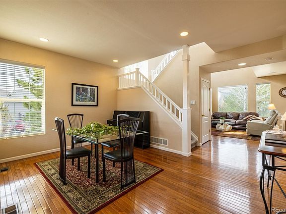 Enjoy stunning mountain and red rock views from this move-in-ready Roxborough Village home, perfectly situated on a quiet corner cul-de-sac lot. The open floor plan is filled with natural light and features high ceilings, double-pane windows, and hardwood floors throughout.