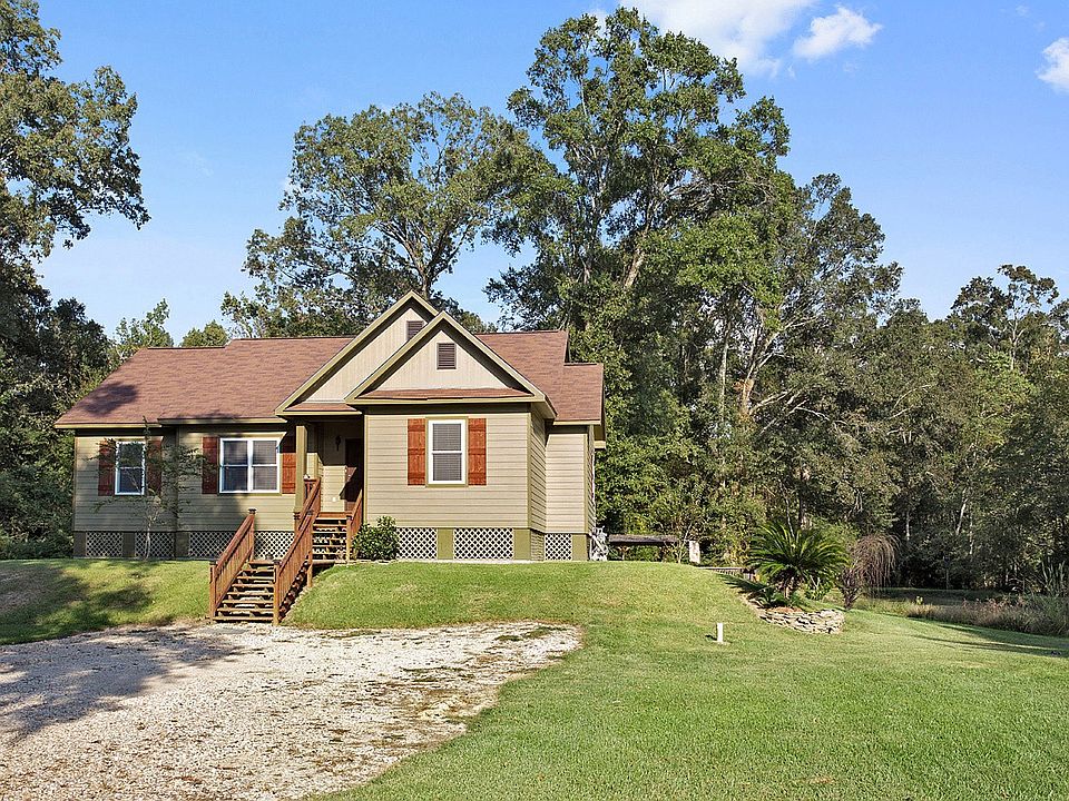 Rare find - 3 acres in Baton Rouge, close to Tiger Bend! Watch the deer and rabbits right from the back porch or fish for catfish and brim from the stocked pond. Priced per current market appraisal. Quaint and cozy with an open floor plan. The kitchen features a large pantry, ample cabinet space and an island. The mud room is located in the back of the home for easy access from the pond. Extra large yard is host to a fenced garden, chicken coop, stone patio/fire pit. Cleared trail into the woods with sweet hunting spots.