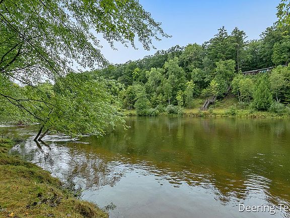 15 wooded acreage on the Muskegon River with a beautiful, solid, energy efficient home! Best of both worlds with privacy tucked back in the woods, but still your own private river frontage. The home features cathedral ceilings, knotty pine, wood stove, and large windows everywhere! Room size was strongly emphasized when the owner designed this home. Living room, dining area, and kitchen are all good size. Main level laundry. Basement is an open canvas for your finishing with all the duct work tucked away and large headers to span open areas to finish. Outside you find a garage 24 x 36 and a separate wood shed. Manicured lawn, deer food plot, tons of turkey and deer. 3 lots total for the 15 acres. Sell a lot to friends or family!