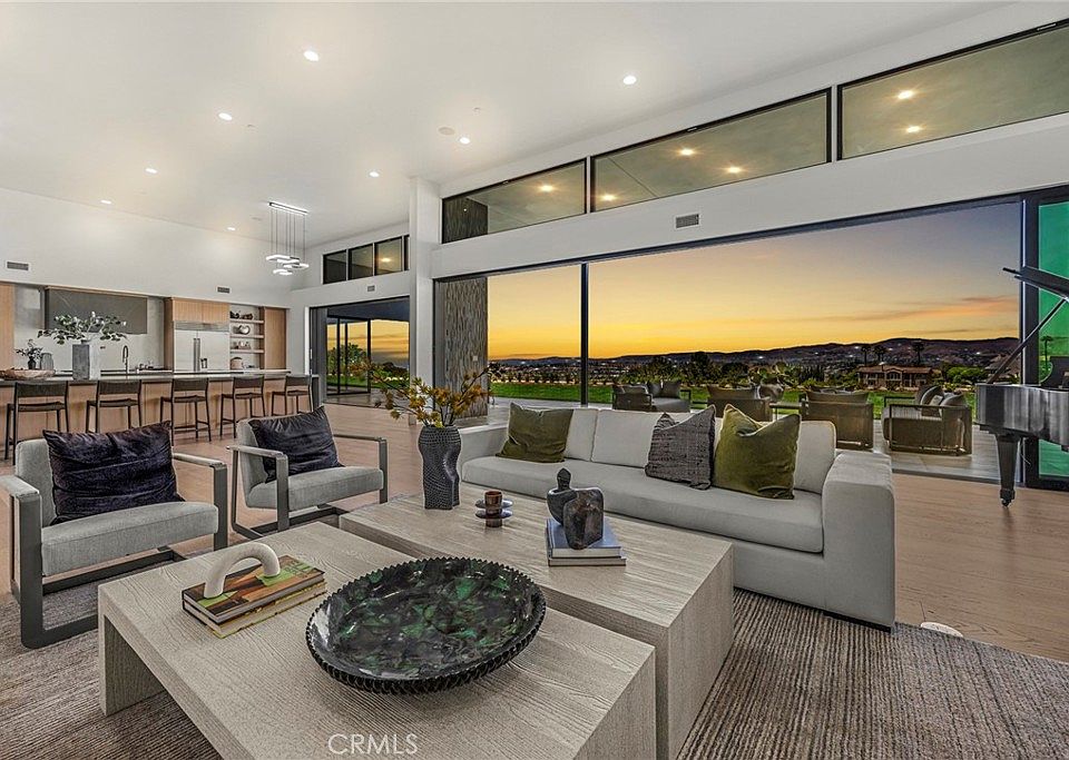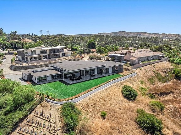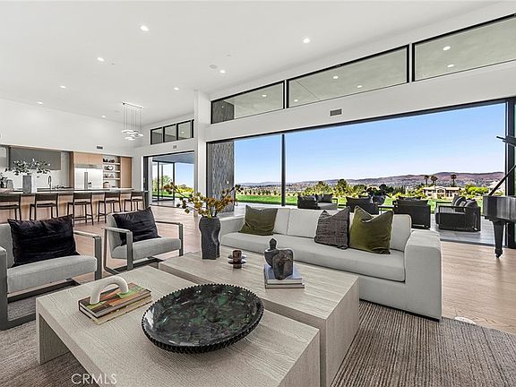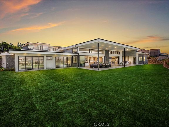 Prepare to be mesmerized! Located inside a privately gated enclave of custom estate homes and resting on one of the most prime locations in Anaheim Hills, this brand new modern masterpiece pushes the standard and defies the limits of possibility. A rural type setting on over a half acre of northern city lights and mountainous views, the pleasurable sounds of birds and wildlife yet minutes to stores, restaurants and some of the best schools in North County. This home was built for entertainment with almost 6300 SF of living on a single level, garaging for 4, RV capable and 1600 SF of covered patio to embrace indoor/outdoor living and cultivate unforgettable entertainment. With a total of 5 bedrooms and 5 and a half baths, every secondary bedroom has suite size dimensions with their own private baths and built out closet space. Every bathroom has been distinctively custom designed utilizing both contemporary and modern designs to give each one its own individual personality. Enter through the 10’ steel pivot door into one of the “greatest” great rooms with 15’ ceilings, white oak floors, lineal gas fireplace with 3d stack stone and combined almost 50’ of disappearing wall of pocket doors. The kitchen is an entertainer’s dream with two enormous islands waterfalled in a Grigio Elegante honed quartz, custom rift sawn white oak cabinets, mix of Thermador professional grade stainless appliances with dual dishwashers, Wolf range and SubZero refrigeration, built in wet bar with column wine fridge. The walk in pantry is almost bedroom-sized fully built out and room for a dirty kitchen. The primary suite is jaw dropping with high ceilings, lineal gas fireplace and engineered with a zero corner opening completely to the view and outdoors. The primary bath rivals the finest of spa amenities with an enormous walk-in closet, his and her vanities, make-up station, soaking tub and an incredible walk-in rain shower room. The floor plan accommodates an additional executive office with walk out covered patio, media/game room and large laundry with mudroom. Experience indoor/outdoor living like never before under the expansive covered patio overlooking front row with amazing panoramic views! The large grassy yard has endless possibilities with room for a pool and outdoor kitchen to compliment this one of a kind estate home. This home will forever capture your heart!