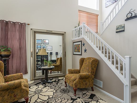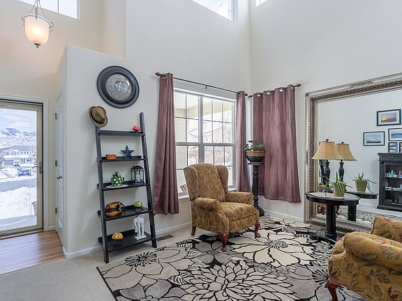 This home has a lovely stucco facade and architectural details. The covered front patio affords an awesome mountain view. As you enter you will be in the great room with a two story volume ceiling and many windows for natural light. The family room just off the kitchen has a gas log fireplace and entertainment nook. In the kitchen you will find solid surface counters with ceramic tile back splash, newly refinished hardwood floors, convenient desk area, maple cabinets and an island. Off of the kitchen there is a sliding glass door to access the back yard with a large composite deck. Also on the main level you will find a powder bath and separate laundry room. Upstairs there is a grand master suite with a large sitting area and walk in closet. The master bath has an over sized jetted tub and double sinks. There are two additional bedrooms with cove molding that share a full bath. The basement is open and ready for your finish with 2 egress windows and a rough in for another bath. 3 car garage for the toys.