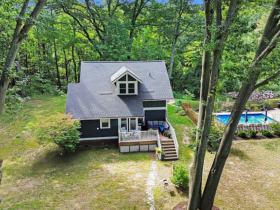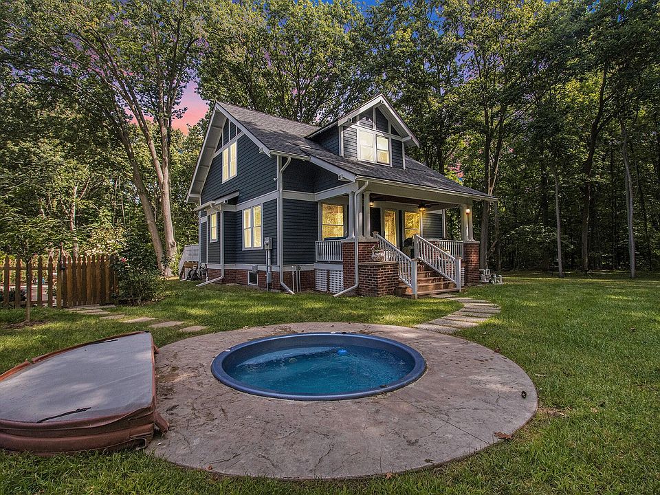 Here is a unique opportunity to own a very special property situated just a few steps from Lake Michigan, and within the lakeshore community of South Haven. Home is nestled on a huge (1.15 acre) parcel, surrounded by woods and wildlife; Deerlick Creek wraps around the property and flows into lake Michigan. The setting for this home is spectacular...you can hear and feel the lake from this home ! House has been lovely renovated and yet maintains the original 1920's charm; warm woodwork, cozy spaces, and lovely porches that will draw you towards tranquility. Home features a nicely appointed kitchen, dining room, and living room on the main level, along with one large bedroom and bath. Upstairs you will find two additional bedrooms, and a cozy nook for sitting or reading; and a couple of special sleeping areas for the little ones. The home is filled with vintage accents, built in cabinets and lovely woodwork. The outdoor space is truly amazing. The front porch is just steps away from a spectacular pool area. Pool offers plenty of room for lounging and features a series of jet spouts that will loll you into relaxation. This area is framed by meticulously landscaped gardens and walkways. The pool area also includes an outdoor half-bath and a separate shower area. The porch in the rear of the home faces the woodlands; step down and a stone walkway will lead you to an inground hot tub. Relax here, or at the nearby firepit area; large enough for you entire extended family. Inside and outside of this beautiful home, you will find quality amenities and features that embody Michigan lakeshore living.