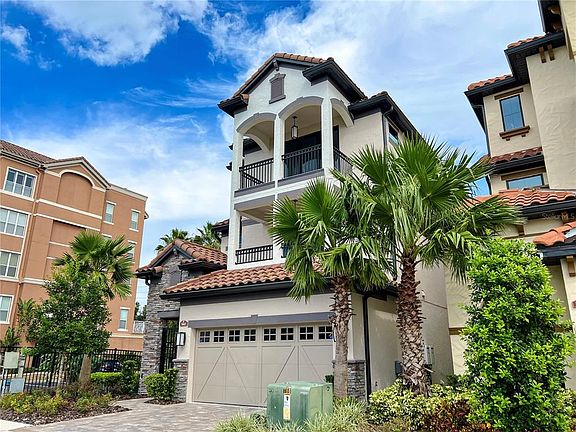 Gorgeous single family home located in the desirable Lakeside at Toscana. This is a 32-home gated community located in Dr. Phillips. After entering the front door, you are presented with hardwood stairs and an elevator. The first floor features include quartz countertops, soft-close cabinets, stainless steel appliances, and separate laundry room with a sink. The second floor has a family room with hardwood floors and a wet bar/mini fridge. Also on the second floor are 3 bedrooms with new Masland Sequoia carpet, 3 en suite bathrooms, and a balcony. The third floor has a fantastic master suite with hardwood floors, freestanding tub, luxury shower(rainfall and two additonal shower heads), large double vanity, seperate office/nursery area, morning kitchen, wet bar/mini fridge, walk-in closet, second washer/dryer, and a balcony. Additionally, the entire interior has been freshly painted with Sherwin-Williams Cashmere. The stunning backyard features brick pavers, bamboo, palm trees, and a gas fire-pit. The community has a pool, gym, and is gated. Great location near restaurant row, theme parks, groceries, etc.