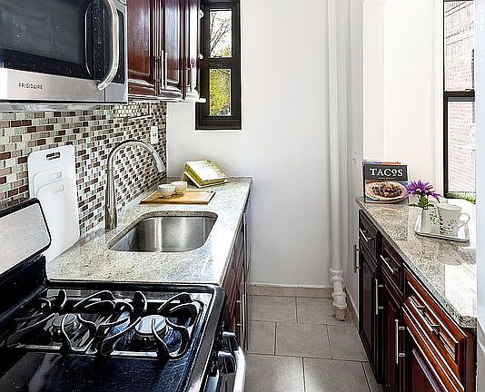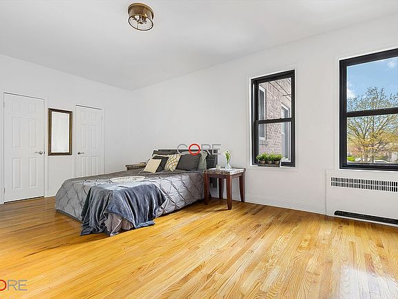 Facing Austin Street and full of pre-war details, this one-bedroom home offers a king-size bedroom, a large living room with room for formal dining, and a windowed bathroom and windowed kitchen.
