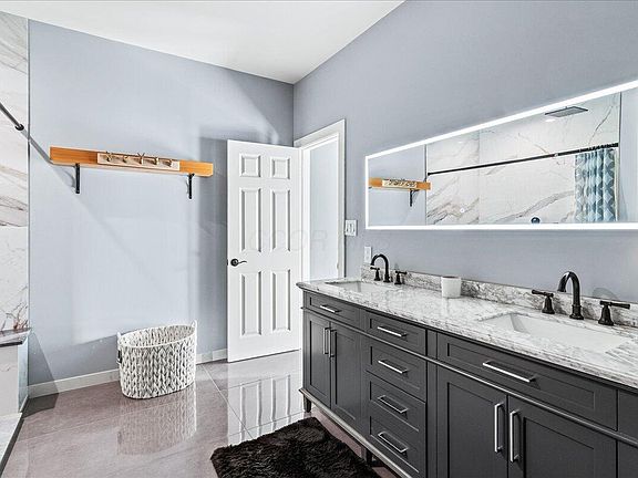 The primary suite includes a large bedroom with room for a sitting area, a walk-in closet, and a bathroom with dual vanities, modern fixtures, a custom walk-in shower, and a backlit mirror. Additional bedrooms are generously sized with ample closet space and natural light. A secondary full bathroom also features sleek finishes with a backlit mirror, while the third full bathroom offers modern tile and fixtures.