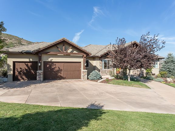 Exceptional quality and finishes throughout this impeccably maintained executive retreat. The main floor study features custom built in cabinetry and shelving. The formal dining area has a lovely chandelier and built in cabinets with granite top for those extra large dinner parties. In the great room you will find a stacked stone fireplace, barrel ceilings, wide plank cherry flooring and skip trowel plaster. The large gourmet kitchen has an island/breakfast bar, stainless appliances and a cooks pantry. There is also a butlers pantry for additional storage. The luxurious master suite has a sitting area, 5 piece bath and his and hers walk in closets. The walk out level boasts 9' ceilings and has 4 additional bedrooms, one with it's own bath, another full bath and a family/recreation room with a gas fireplace with slate surround, wet bar and wine room with a custom wrought iron gate, granite counters and wine rack.