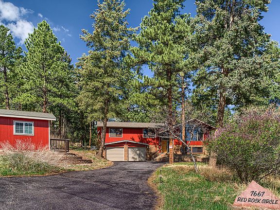 Situated on a large private lot, this beautifully remodeled home combines both industrial & farmhouse flare. Through the entry, custom beetle kill wood frames the new entry door. The custom staircase, with cable wiring, leads to the upper and lower level. The upper level is full of natural sunlight with large windows to watch the deer & views of the beautiful red rock formations. Updates include: Red Oak laminate flooring throughout the upper & lower level, new carpet in the bedrooms, new interior & exterior paint, newly updated bathrooms with custom tiling & new vanities, custom light fixtures with LED lighting, new windows, new blinds in the bedrooms, new baseboards & trim, new solid wood doors & hardware, whole house carbon filters & resin filter, newer roof, HVAC & hot water heater. The gorgeous kitchen has been renovated & expanded & features custom painted cabinetry, a coffee bar & breakfast bar seating, granite counters, stainless steel appliances & self-venting hood, a stainless steel apron sink/backsplash & new faucet. The living room features a wood burning fireplace & large windows to watch the deer & wild turkeys. The upper level Master bedroom has a new bay window & its own en-suite bath & walk-in closet with custom built-ins. Interested in perhaps a bed and breakfast room? The newly converted sunroom has its own exterior access & features a wood paneled ceiling with ceiling fan, custom lighting, custom cable wired shelving, & large windows to retreat into nature. This newly converted sunroom could also be used for a fifth bedroom, an artist studio, a library or large study. Just around the corner you will find an updated full bath, a secondary Master Suite with Gas Fireplace, & a large walk-in closet with custom built-ins. Exterior features include an oversized two car finished garage with epoxy floor, a storage shed and extra guest parking. This home is very energy efficient with low utility bills. Welcome to Perry Park living at its Finest!