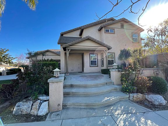 Beautiful 5 bedroom home in Rancho Cucamonga. Kitchen has dark brown cabinets with granite countertops. Tile floors with travertine throughout downstairs. Recessed lighting everywhere. Exterior has stamped concrete and nice landscaping. Close to Vicoria Gardens