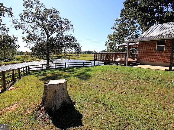 Welcome to 767 Addison Road, a private retreat on 7.27 acres with its own peaceful lake, surrounded by open pasture. Built in 2017, this 4-sided brick home blends modern upgrades with rustic charm, showcasing a log cabin-style interior of wood walls, ceilings, and floors beneath a durable metal roof. Inside, the country kitchen shines with quartz countertops, a farm-style sink, and sleek black stainless steel appliances, all opening seamlessly to the living area. A striking masonry fireplace anchors the great room and is powerful enough to heat the entire home. The layout offers 3 bedrooms and 2 full baths, with additional flexible living space in the finished basement, currently used as the owners' master suite. Two bedrooms sit on the main level, while the upper level provides a third bedroom and generous walk-in attic storage. Outdoor living is unmatched here - whether you're relaxing on the expansive back deck overlooking the lake, enjoying the wraparound covered patio, or roaming your fenced acreage. Covered shelter provides parking for a camper and boat, and the mix of pasture and privacy fencing makes this property ideal for homesteading, recreation, or simply savoring the serene beauty of country living. Energy-efficient and thoughtfully designed, this home delivers the perfect balance of comfort, privacy, and timeless appeal.