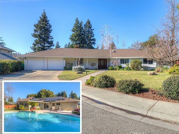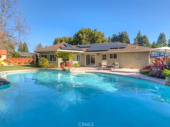 Welcome to Big Chico Creek Estates! Chico's most desirable west-side neighborhoods! Nestled at the end of the cul-de-sac, this stunning property offers privacy, charm, and a lifestyle of luxury. Sitting on a large lot, this home features OWNED SOLAR, Whole House Fan, ensuring energy efficiency and significant savings and NEW Interior & Exterior Paint. The backyard is a true oasis, boasting a stunning POOL with a removable fence, and a pool heater, perfect for year-round enjoyment. Surrounding the pool, you’ll find lush landscaping and a variety of fruit trees, including lemon, orange, pomegranate, grape vines, and so much more, a gardener's delight! Inside, the timeless interior exudes sophistication with high ceilings adorned with beautiful beams and a layout designed for both comfort and style. The chef’s kitchen is a culinary masterpiece, equipped with premium appliances, ample counter space, and a flow ideal for entertaining. Spacious bedrooms throughout that provide plenty of room for everyone. The luxurious master suite is your very own private retreat! It features a large walk-in closet and a spa-like bathroom complete with a soaking tub for ultimate relaxation. Step outside to the backyard that is perfect for entertaining, whether you're hosting poolside gatherings, enjoying a meal under the stars, or simply relaxing in the serene setting. Don’t miss this exceptional home that truly has it all!