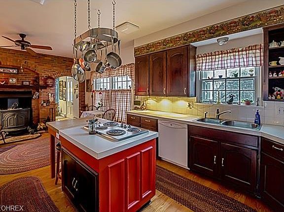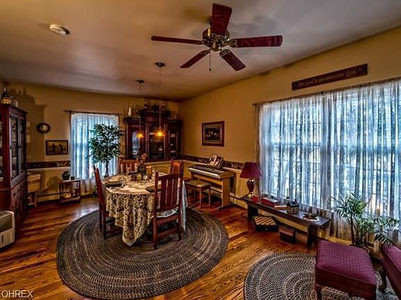 Spacious 1856 historic brick colonial completely updated on 3.66 acres. Home features 9ft. ceilings, beautiful hardwood floors and gorgeous woodwork throughout. Large two-story vaulted living room has a floor to ceiling brick fireplace and an additional brick wall. Open and spacious fully applianced kitchen with a cozy eating area, center island and woodburner. Formal dining room has original handmade cabinetry and grand wood entry doors. 4 bedrooms, 3.5 bath, 1st floor master suite. Bedrooms upstairs have unique built-ins. Brick patio leads to a gazebo with hot tub, 2 porches, mature trees and a beautiful landscaped grounds with outbuildings. Lower level rec room w/full BA, two car attached garage, lots of storage, a workspace and a propane back up generator. Excellent location on a cul-de-sac lo; but conveniently located to highway access. Only 40 minutes to Cleveland and 20 minutes to Akron.