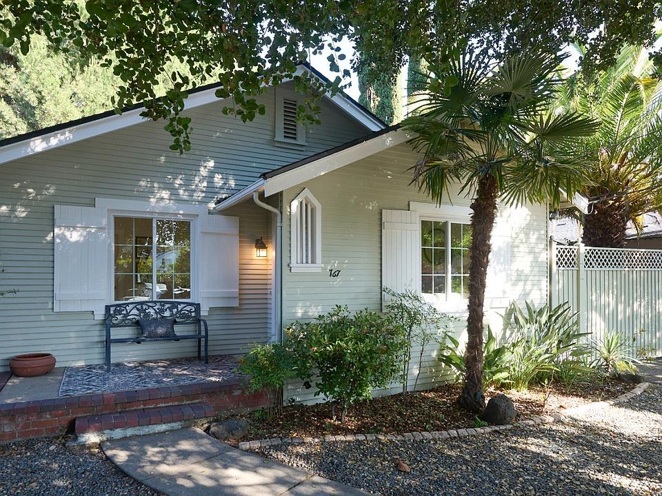 Charm Meets Convenience and Lifestyle! This beautifully and extensively remodeled home is ideally located just a short walk from vibrant Castro Street, local parks, the farmers market, Caltrain, etc. Enjoy additional square footage of a finished detached one-car garage (~177 sq. ft) perfect as a family room or office and a finished shed ideal for a home workspace or studio. Inside, a bright living room with a cozy fireplace welcomes you, while the Newly Remodeled eat-in chef's kitchen features white cabinetry, stainless steel appliances, and a central island for casual dining or entertaining. The primary bedroom offers generous closet space and direct backyard access. **Newly Updated: bathroom, dual-pane windows, central heating and A/C, plumbing, electrical panel, high power line for potential car charger, fences, automatic gate opener and a * brand-new roof * add to the home comfort and value. Laundry and storage are in the basement (extra ~60 sq. ft). The lush backyard includes mature trees and a flagstone patio ideal for outdoor dining. Additional highlights: ample tandem parking, and easy access to Hwy 85, 101, and Stevens Creek Trail. Located in the highly regarded Mountain View School District this home offers the perfect blend of space, style, and location.