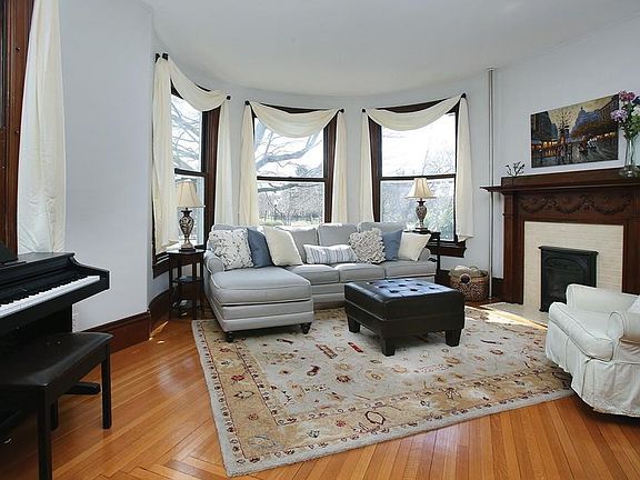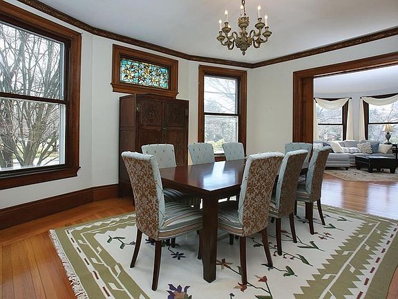 This 1891 Queen Anne on a level, corner lot was built by Henry F. Ross. There is a wrap around front porch. The front parlor, living room and dining room all have fireplaces. There is much period detail throughout including bay windows, stained glass, natural woods and window seats. There are 4 BR on the 2nd floor and 3 rooms on the 3rd inc. a 26'x20' family room with an elaborately decorated hooded.FP. There is a two level back deck accessed off the kitchen and breakfast room. OH SUN 1PM-3PM